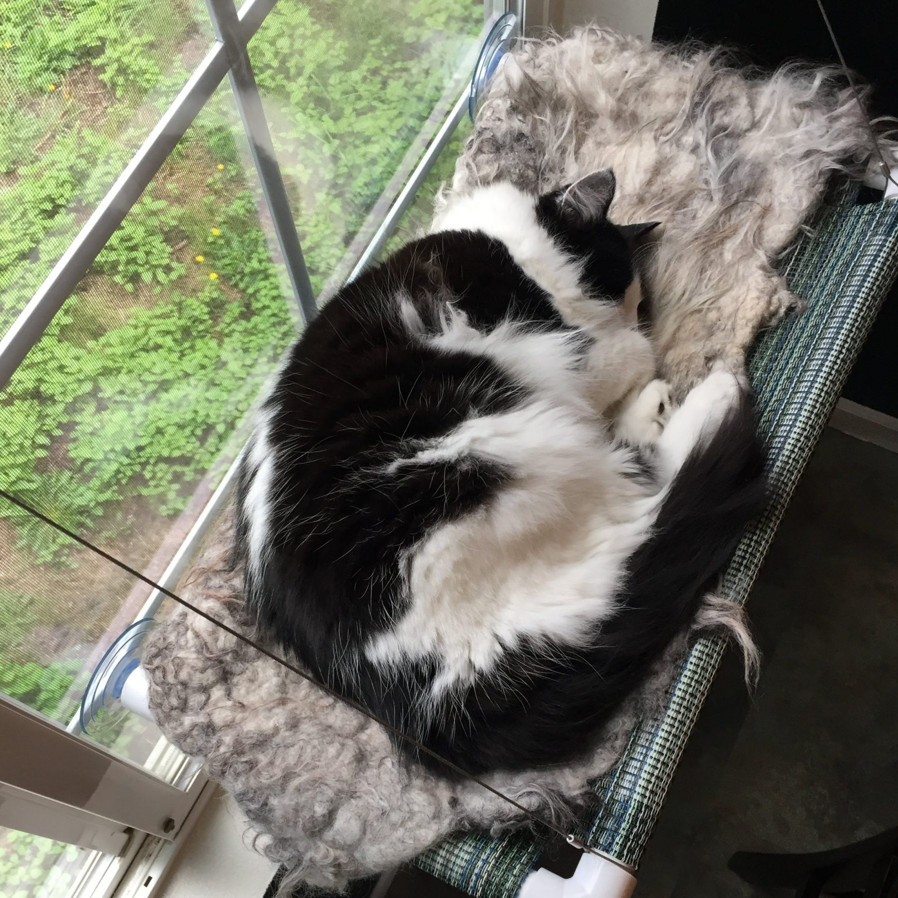 When you’re looking to drift into sleep, one of the only things better than counting sheep is to snuggle up on one. My humans got me this cozy wool cat bed over a year ago and I love it!!! It’s from an amazing shop called Cats Love Ewe which offers cruelty-free wool cat beds and toys. My bed fits perfectly on top of my window cot (will review in a future post!). The sweet shop owner even included some free wool heart and ball toys and a very nice note.